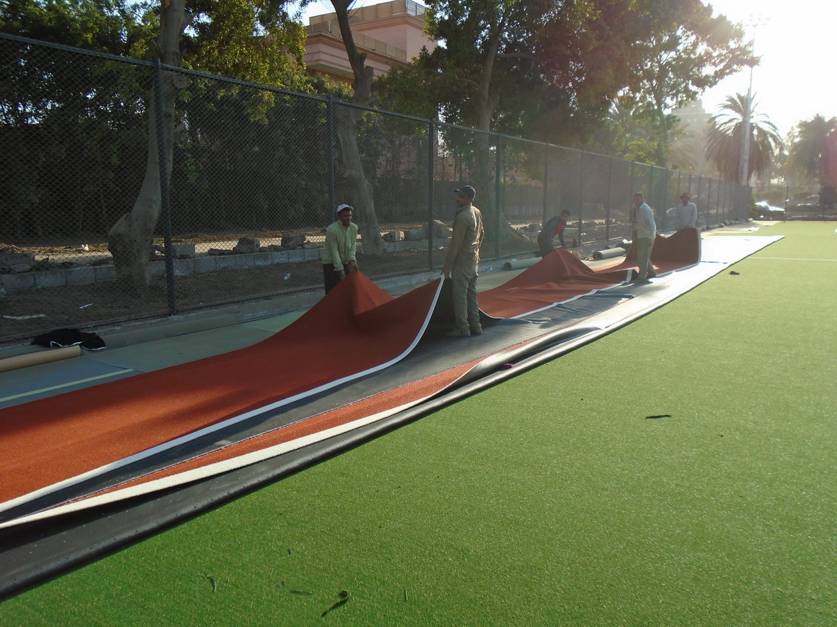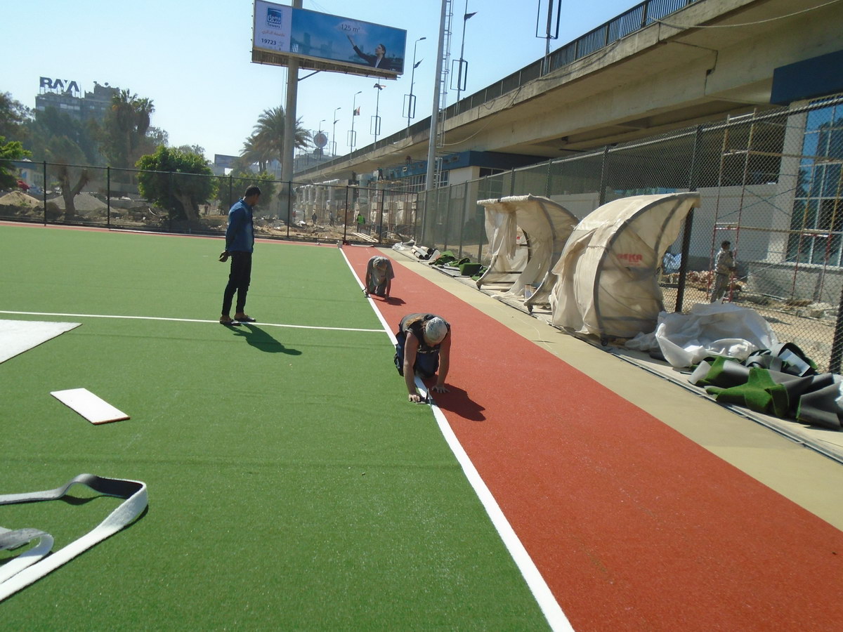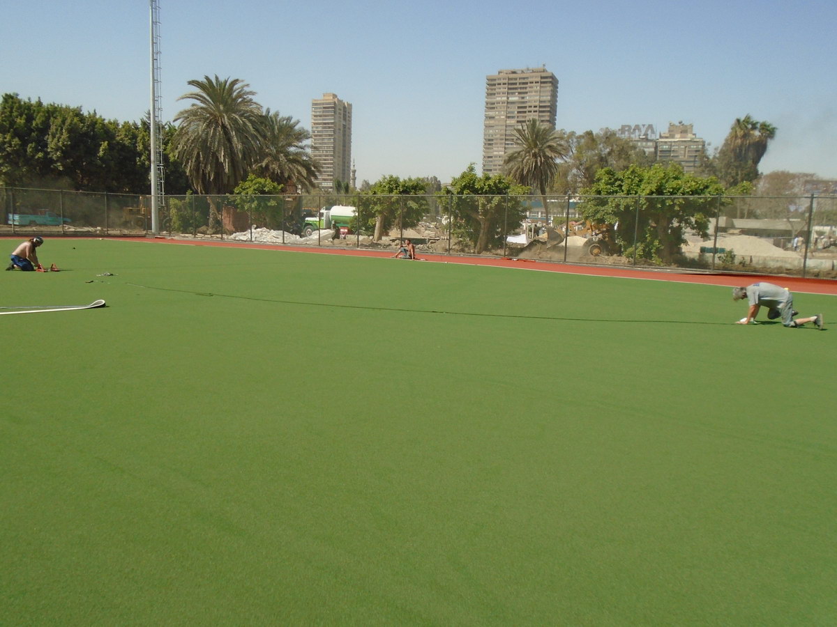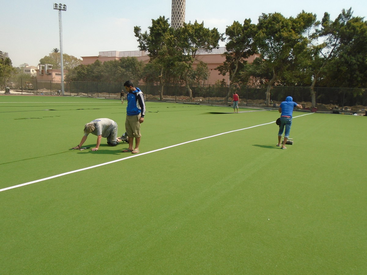 Instalace umělého trávníku pozemního hokeje v Káhiře (Egypt)