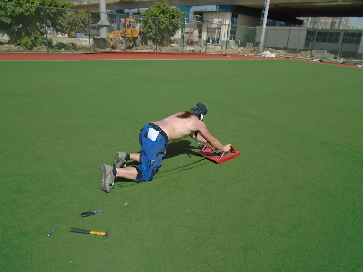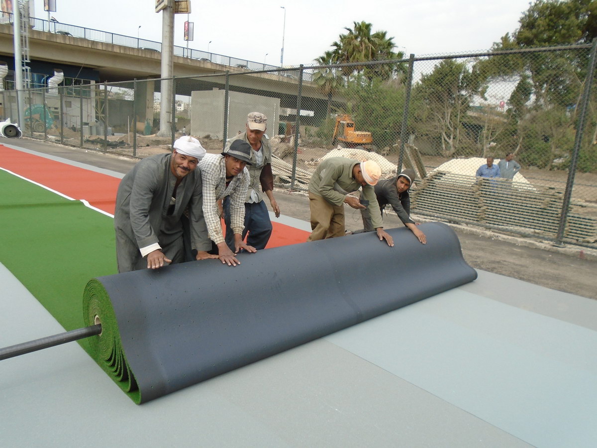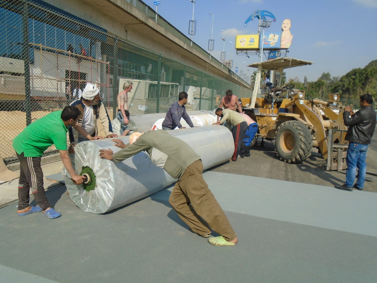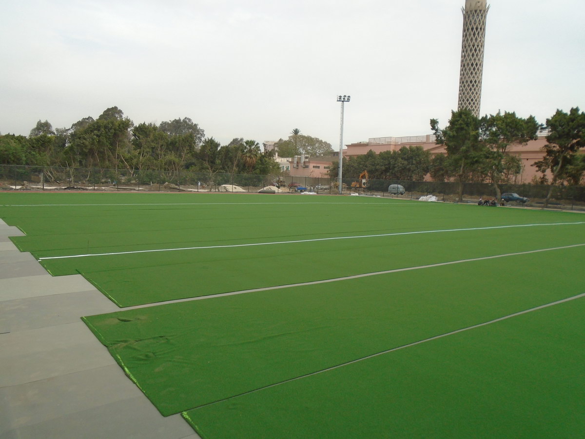 Instalace umělého trávníku pozemního hokeje v Káhiře (Egypt)