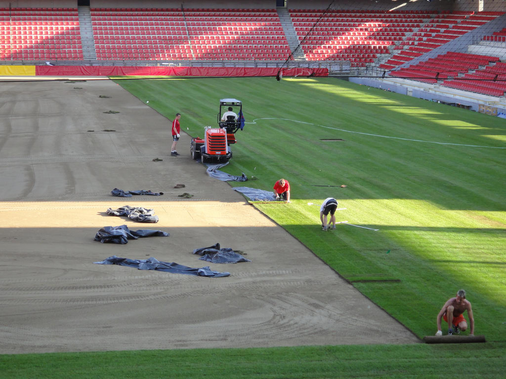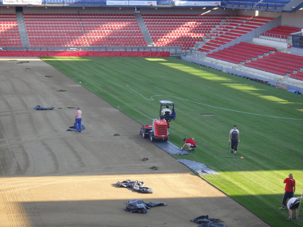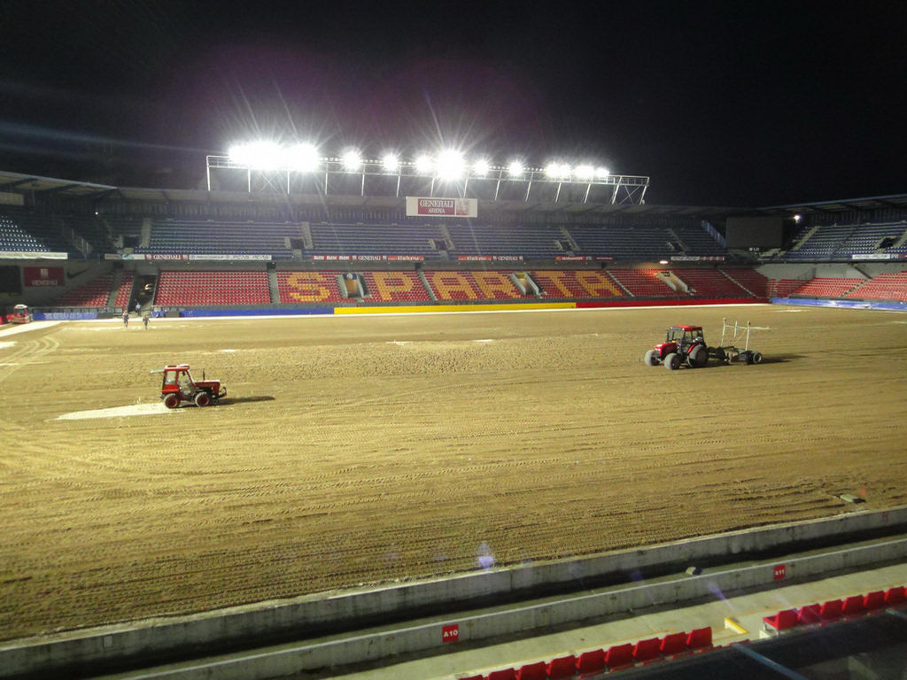 AC Sparta Praha – rekonstrukce hrací plochy Galerie Další realizace AC Sparta Praha – rekonstrukce hrací plochy AC Sparta Praha – Oprava hrací plochy AC Sparta Praha Mobilní osvětlovací rampy na přírodní fotbalové trávníky