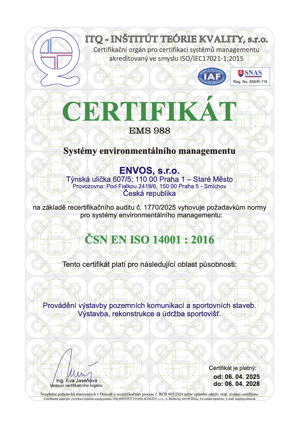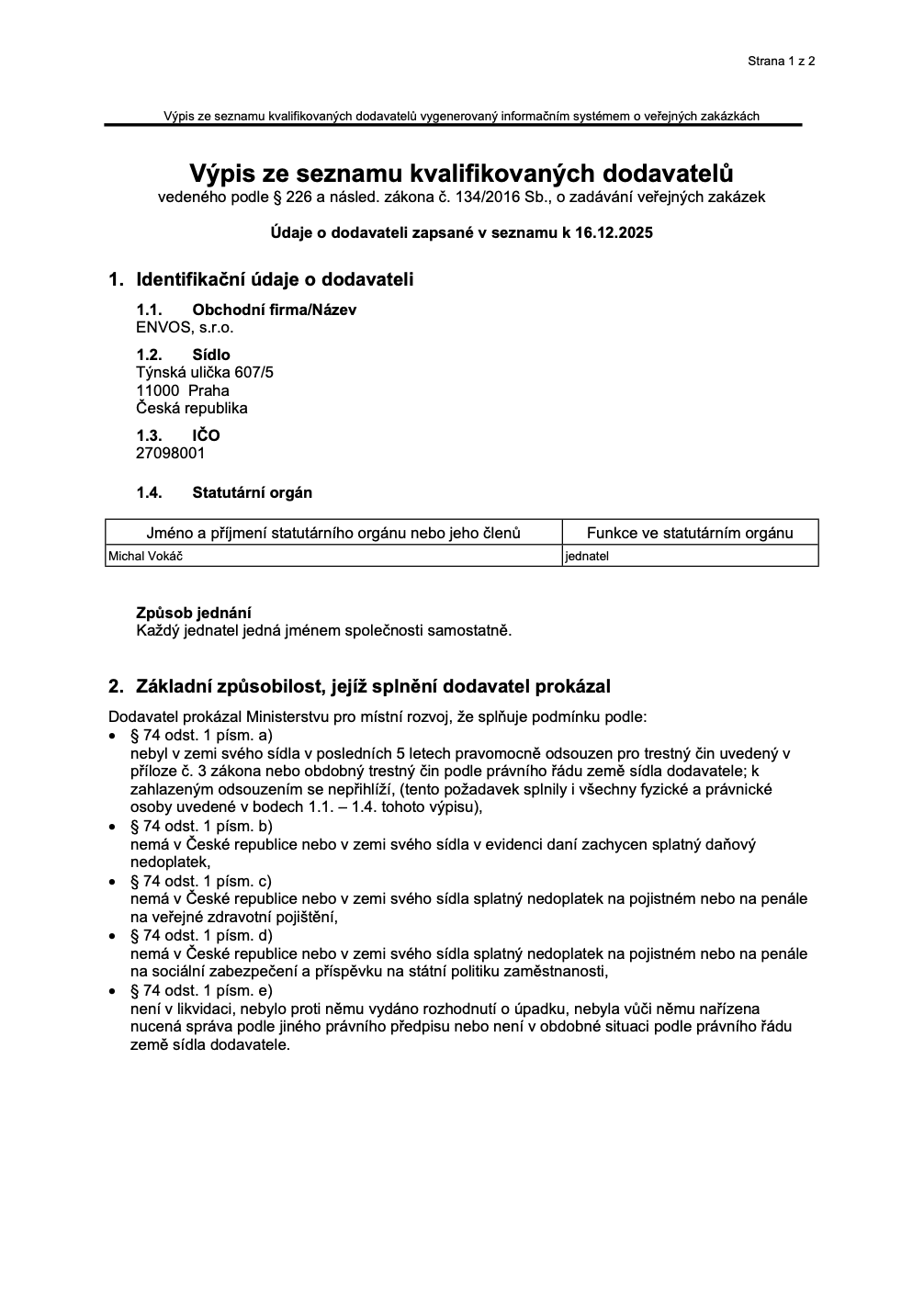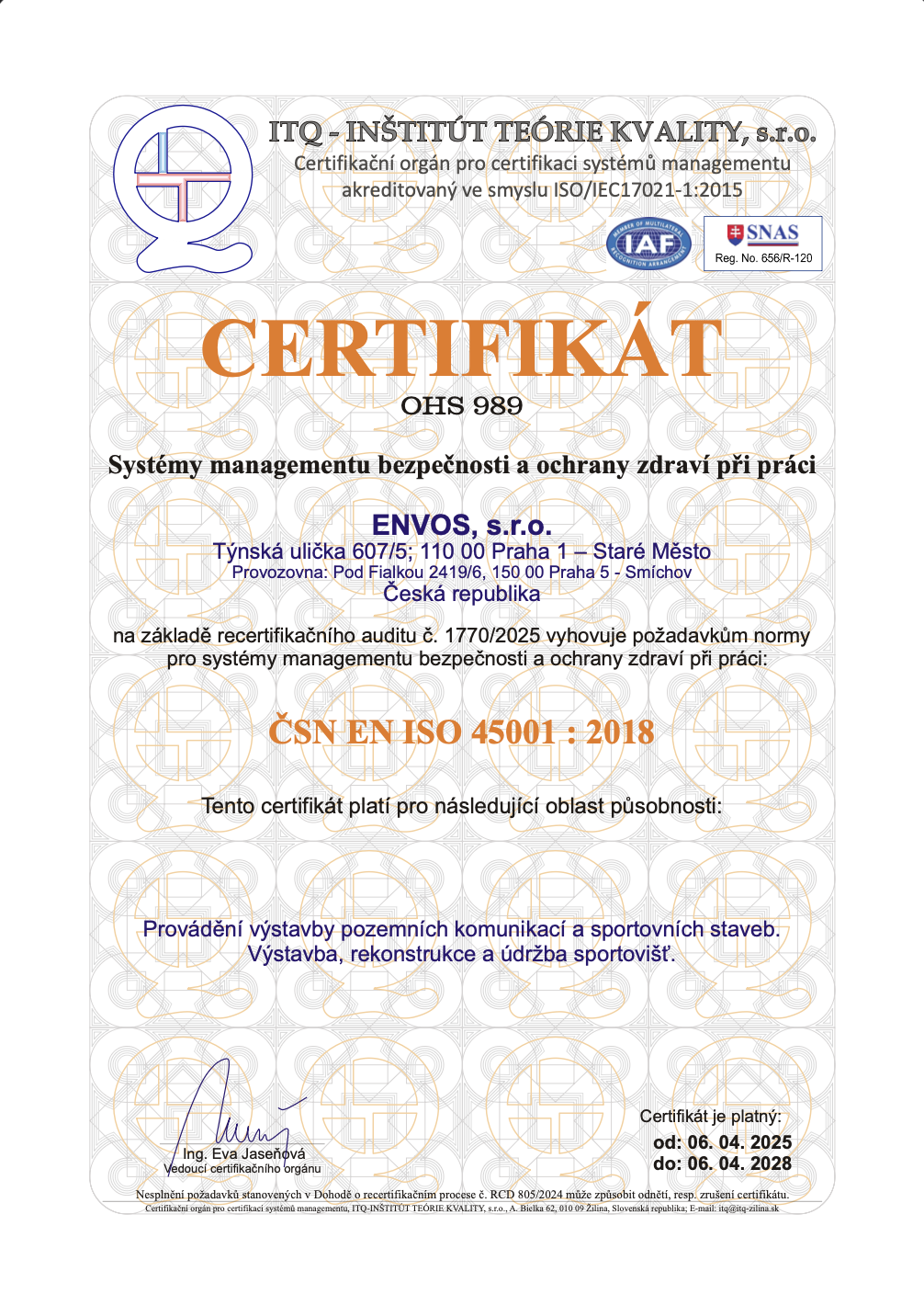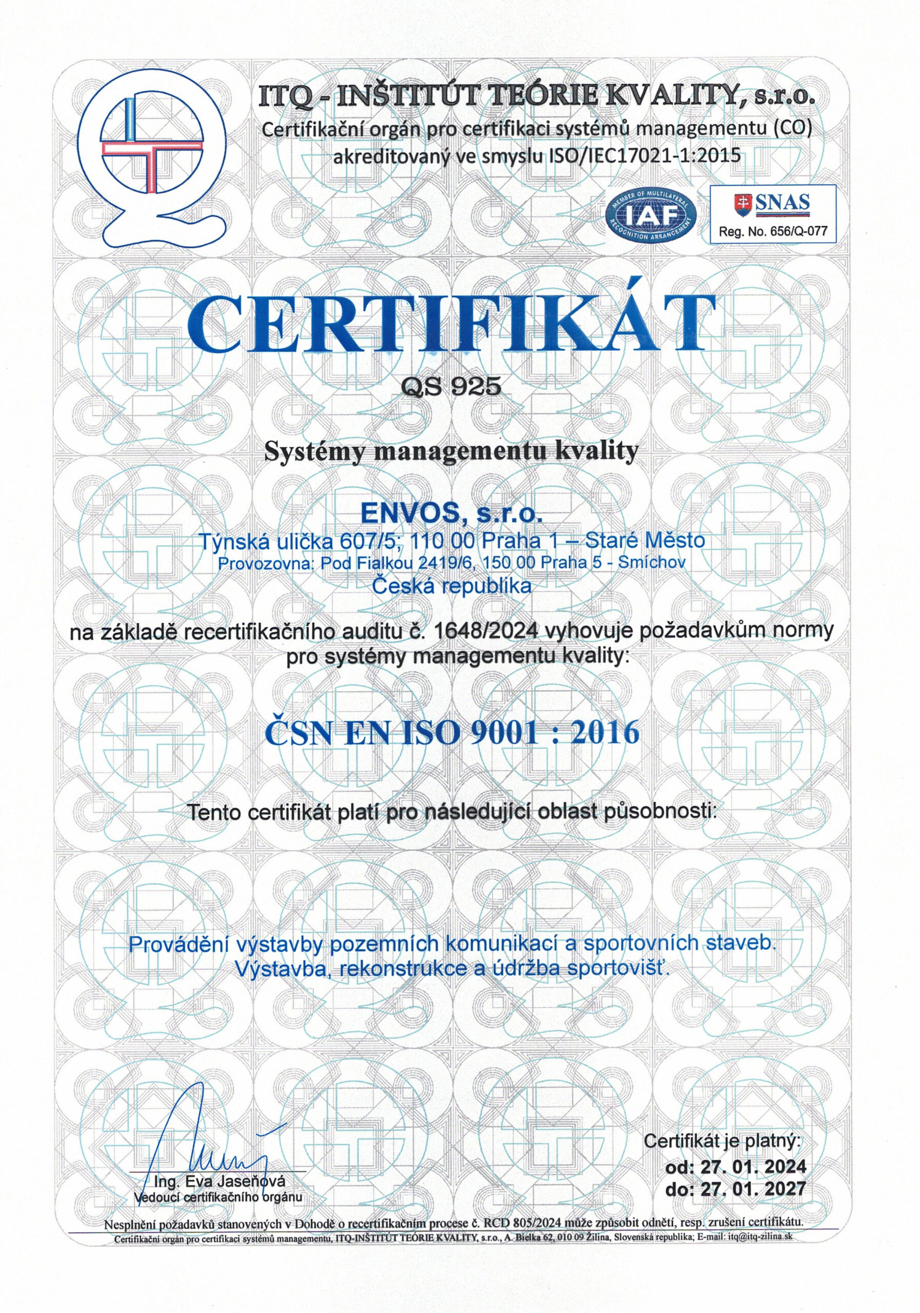CERTIFICATES Certificate ESTC Certificate Asociace UT3G ČSN EN ISO 9001:2016 ČSN EN ISO 14001:2016 ČSN EN ISO 45001:2018 Envos - Extract from the List of Qualified Suppliers Verified Company